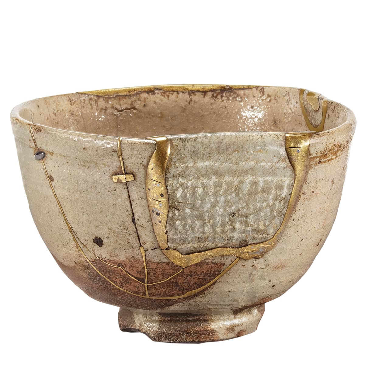 Coutures dorées, patchs empruntés et rivets métalliques. - Ce sont essentiellement les techniques avec lesquelles des générations d'artisans japonais ont traité toutes sortes de dommages en céramique.