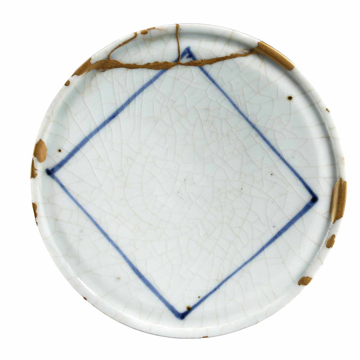 Petit plat en porcelaine céladon et restauration kintsugi à la poudre d’or