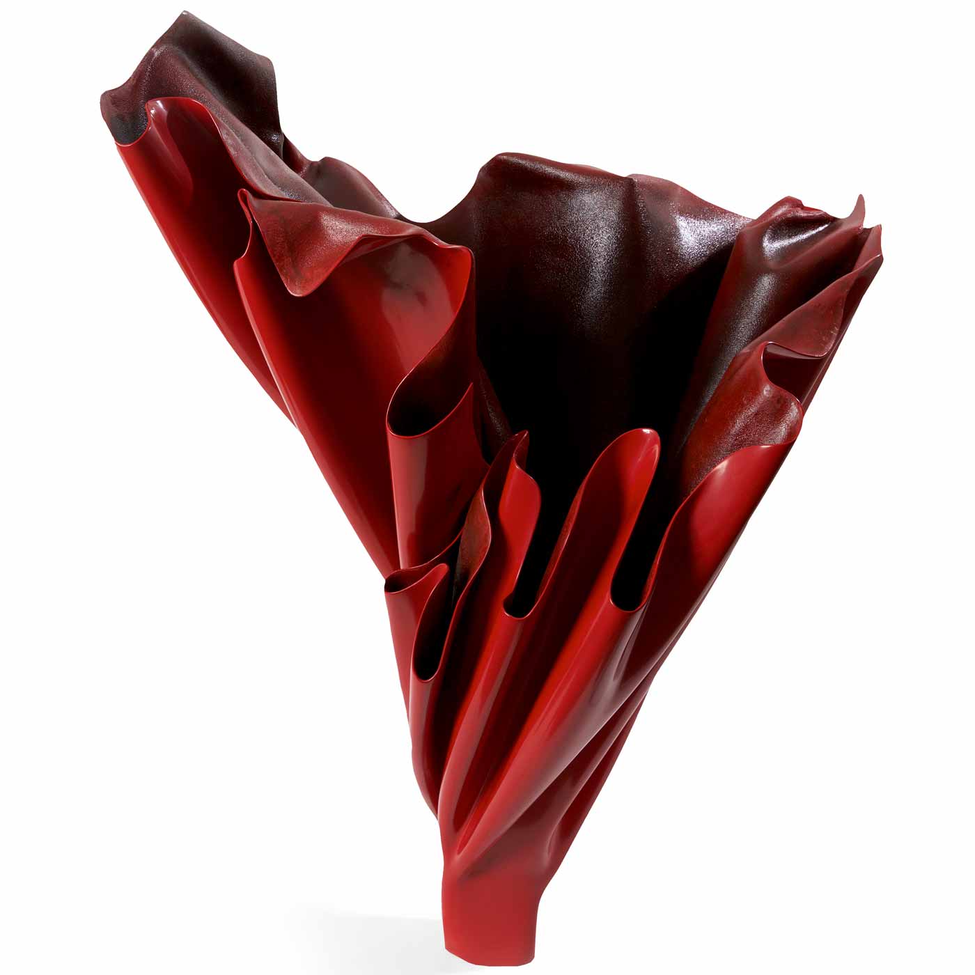 Ses œuvres déploient une palette chromatique vibrante, mêlant rouges ardents, noirs profonds, reflets bleutés et éclats cuivrés. Ces jeux de matière et de lumière confèrent à chaque sculpture une présence presque tellurique.