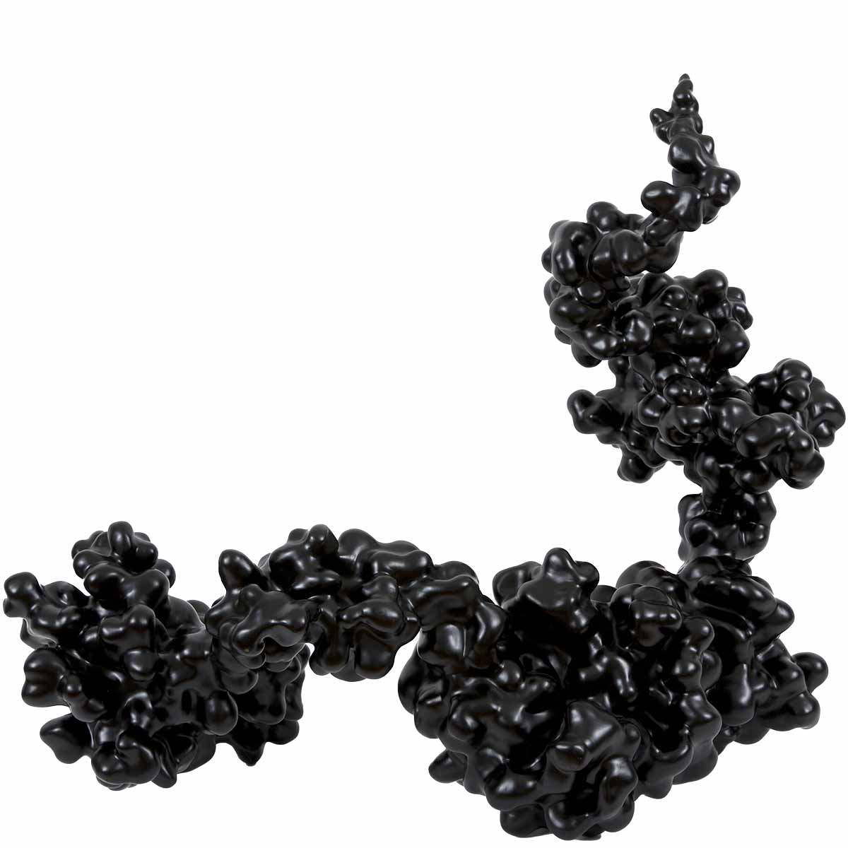Tout droit sorties d'un pays de cocagne, ses sculptures lisses et noires sur noires, jaillissent comme des monts merveilleux.