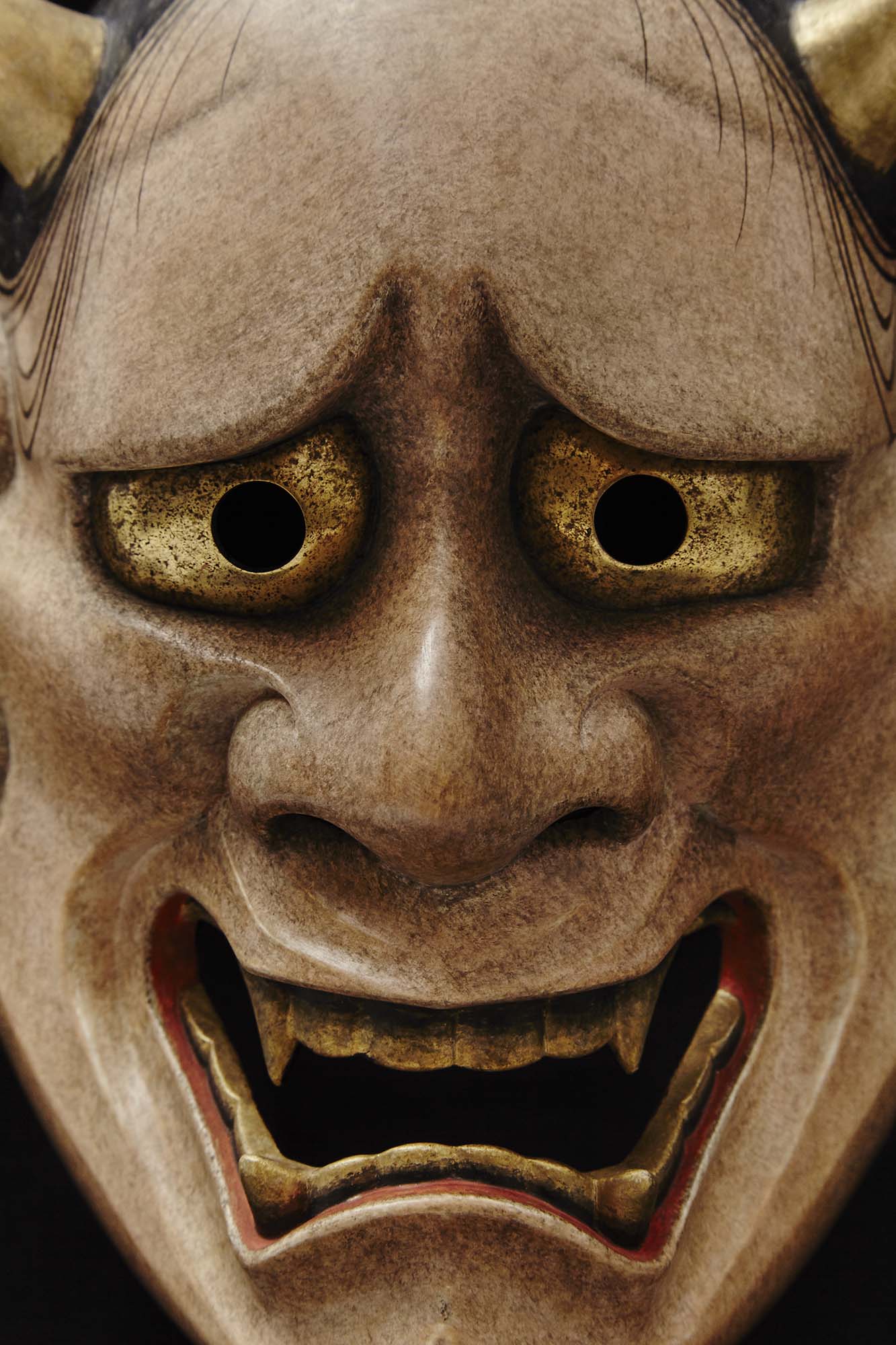 Masque de théatre nô représentant le fantôme d'une femme jalouse devenu un démon.