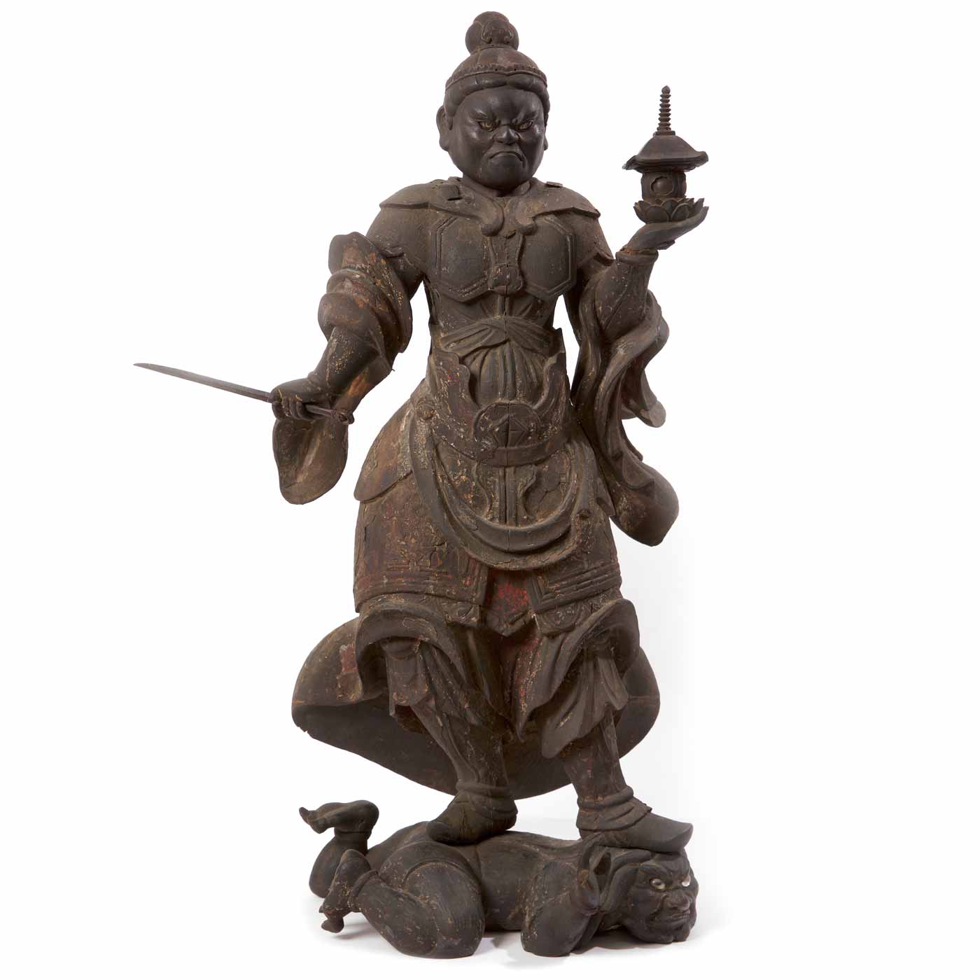 Dieu protecteur du panthéon bouddhiste, gardien du Nord, il anéantit les forces démoniaques et protège les trésors spirituels. Œuvre typique de l'époque de Kamakura.