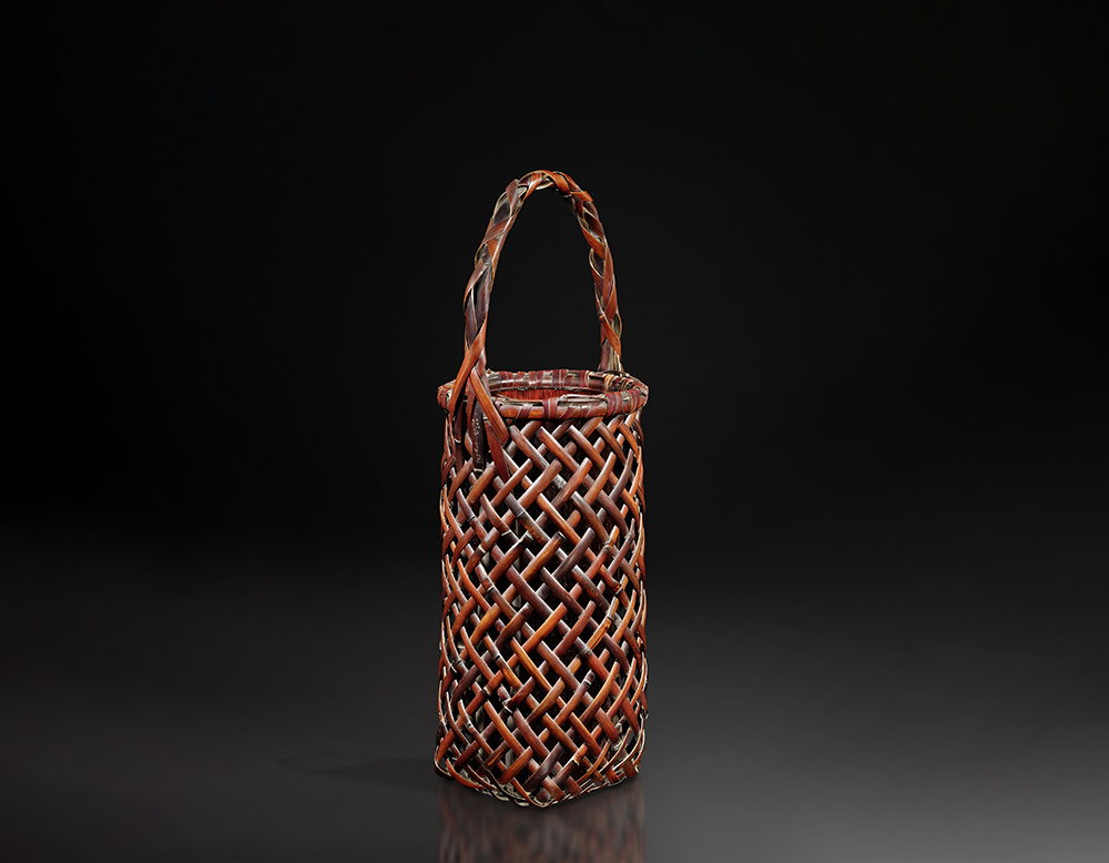 Sixth son of master wickerwork weaver Hōsai, Iizuka Rōkansai was born with the name Yanosuke in Tochigi Prefecture, and also went by the name of Yuseki. Around the age of twelve, he began to study the wickerwork arts with his father and quickly developed his aptitude for it. In spite of Rōkansai’s genius, his older brother Hōsai II, who directed the family studio, signed his own name to Rōkansai’s pieces. The latter dreamt of becoming a painter, and pursued his education at the Beaux-arts school, where he learned calligraphy, studied Sinology, and composed haikus and poetry. His background in so many different artistic forms explains the diversity seen in his wickerwork creations.