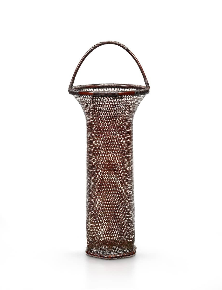 Chikushinsai II was born in 1939 (Showa 14), Kobe City, Hyogo prefecture, and succeeded as Chikushinsai II in Showa 57 (1982). In 1997, Chikushinsai II often made works for the Urasenke School of Tea, and wrote an essay for the Tanko Magazine Issue Number 51 (Urasenke School of Tea Journal) about flower baskets.