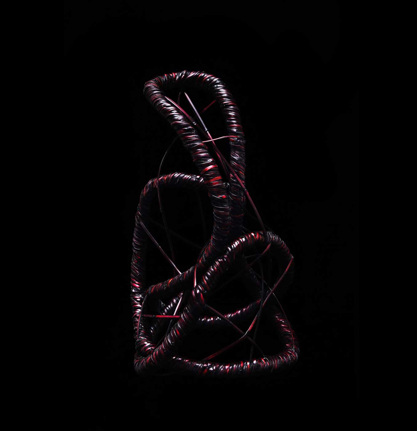 The regenerative quality of bamboo is at the origin of its fascination with this grass with its hollow thatch. The images, sounds, sensual and emotional experiences of everyday life find a new expression in his hands to create woven sculptures. He views the process of preparing bamboo before weaving as inherently meditative. Then, the sculpture emerges vigorous and vibrant. Shape, contrast, balance and the interaction of space, color and texture are all constituent elements of his work.