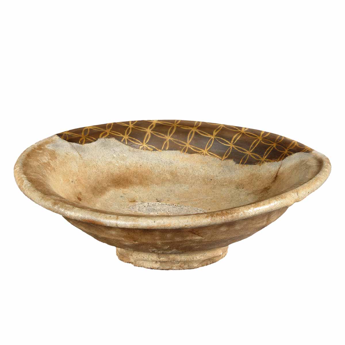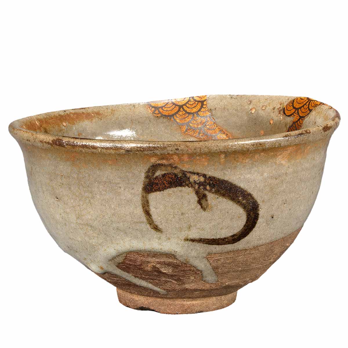 Small Karatsu sandstone dish and kintsugi restoration with gold lacquer