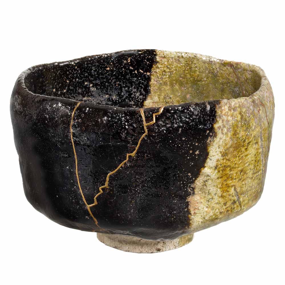 Kintsugi gold lacquer repair with wave patterns