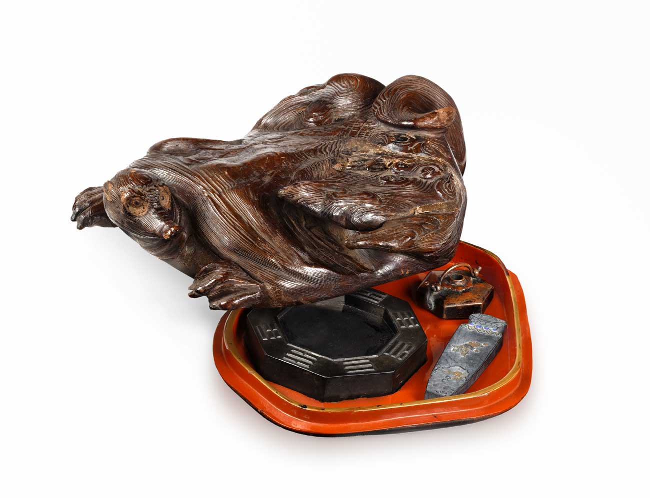 Carved wood, lacquer, inkstone, ink slab, water dropper