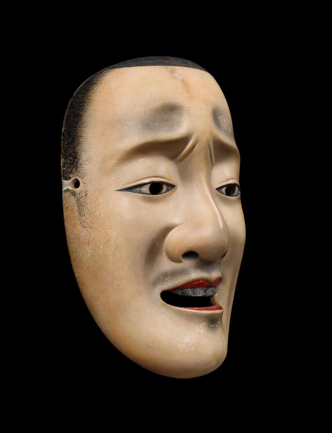 This mask embodies the image of the refined aristocrat—elegant and graceful—yet burdened with inner suffering. It could be worn to portray a handsome young nobleman, or an aristocratic warrior of the Heike clan dying on the battlefield.