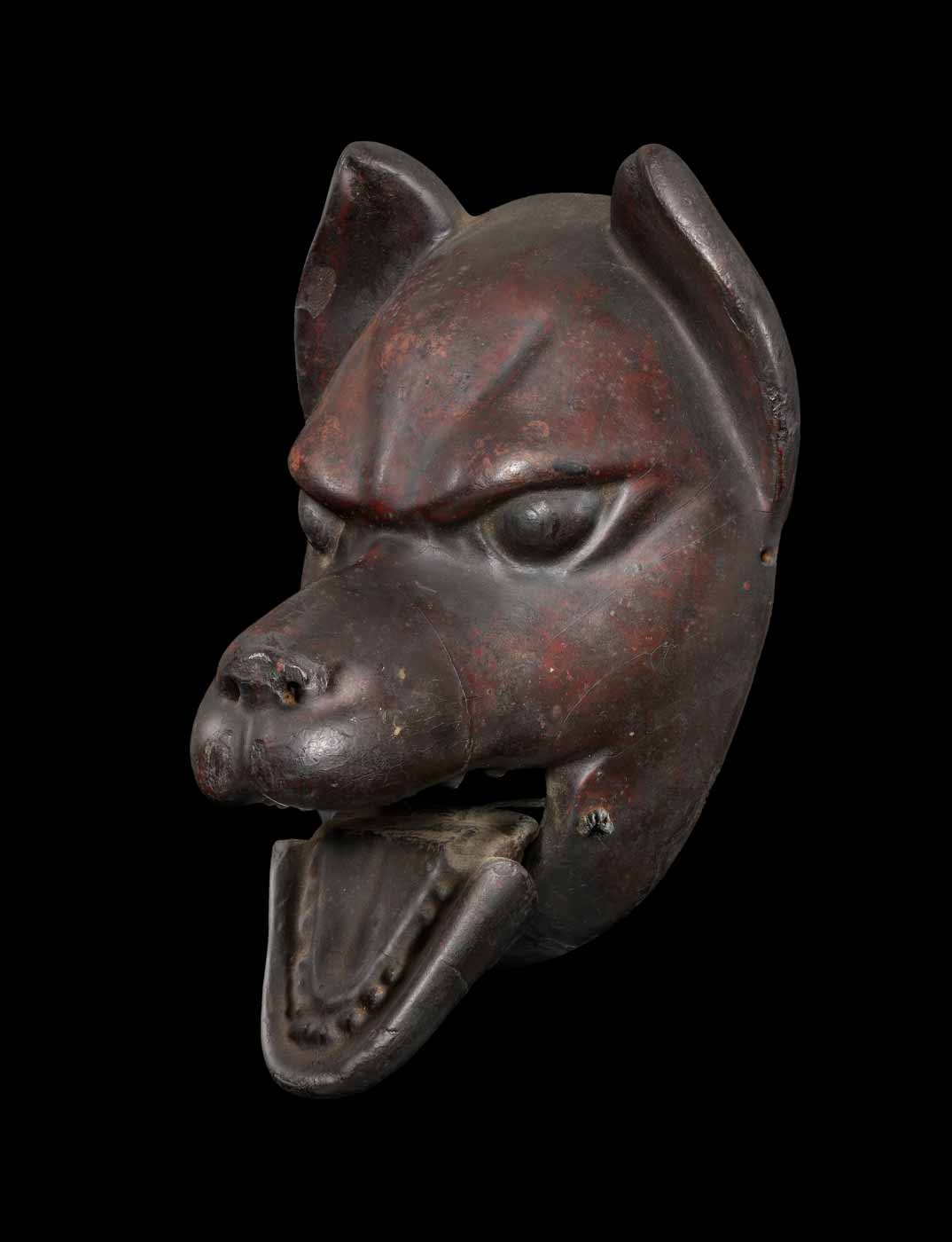 This mask reflects the popular tradition of Kyōgen, the humorous complement to Nō theatre. Its Edo-period craftsmanship preserves the spontaneity and vitality characteristic of village farces and festive performances, where the kitsune holds a privileged place among animal masks.