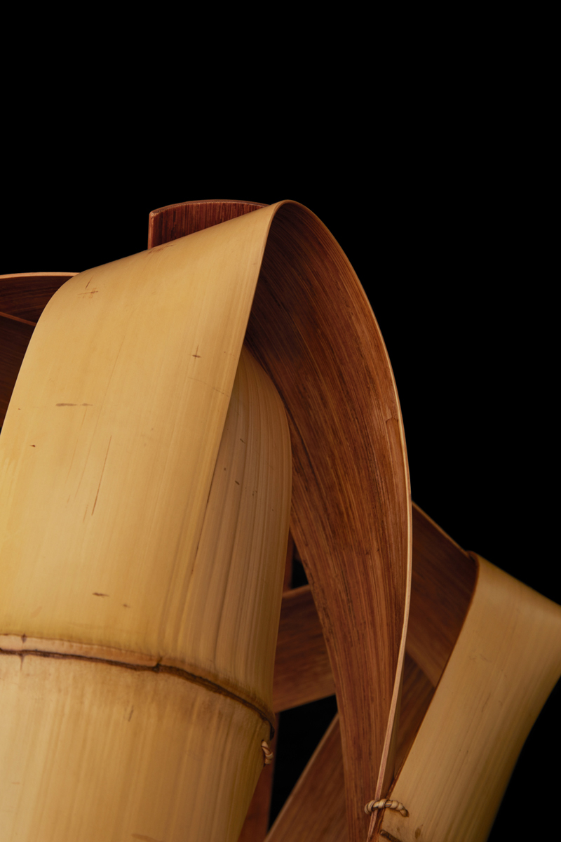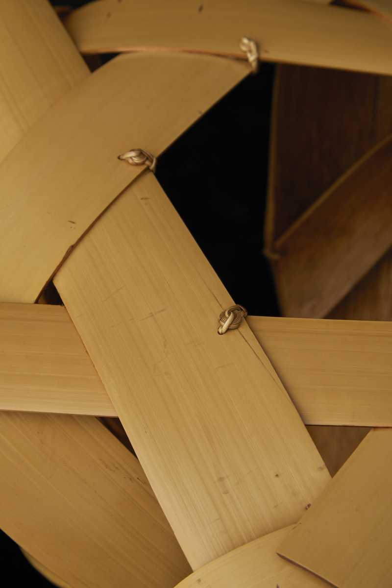Disciple du maître et Trésor national Iizuka Shōkansai (1919-2004), Matsumoto Hafū maîtrise à la perfection les techniques de décapage, d'aplatissement et de façonnage de larges bandes de bambou, un savoir-faire propre au studio Iizuka.