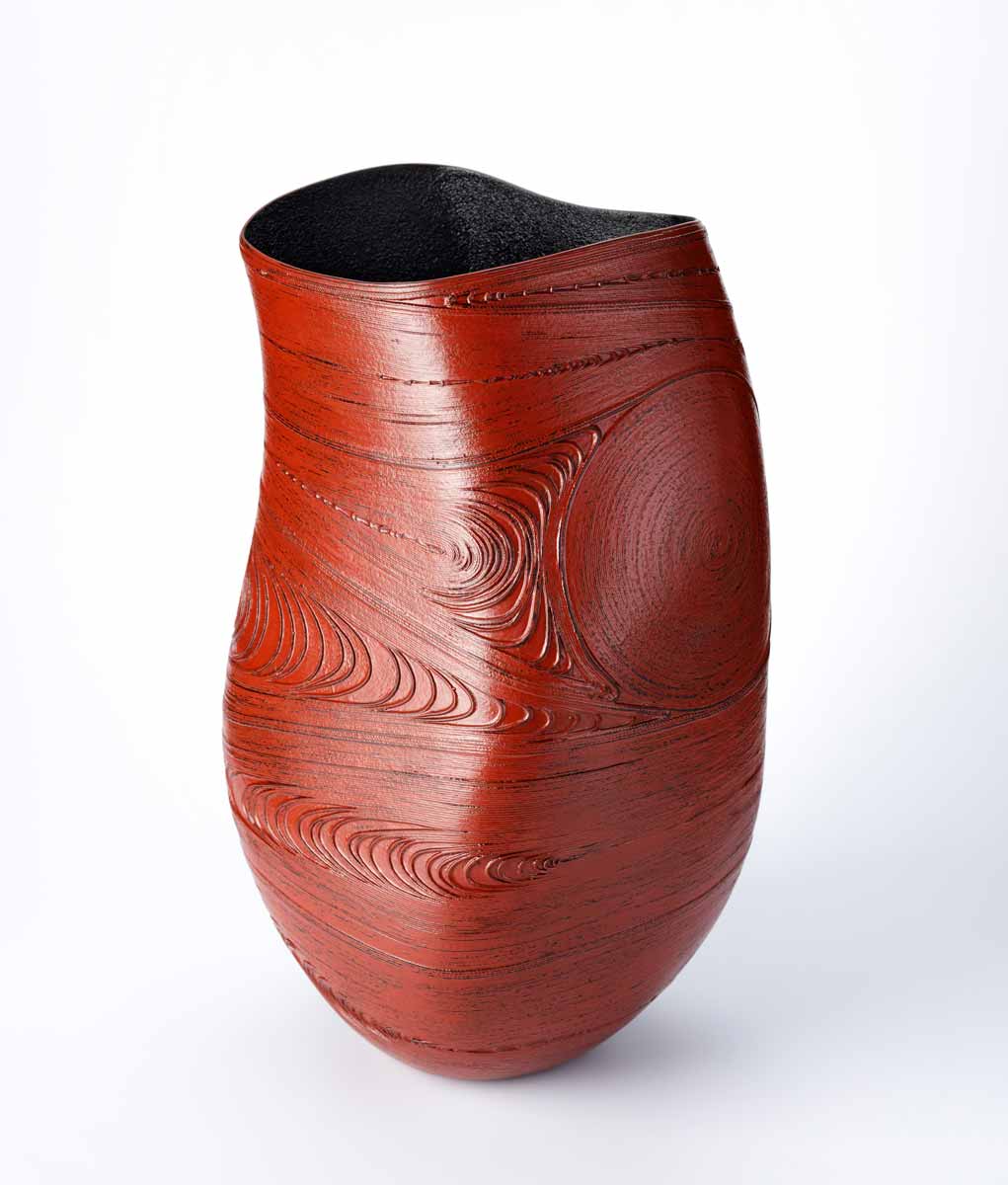 Digne héritier des techniques ancestrales de l'urushi, Ken Noguchi enroule ses cordes sur des moules puis applique la sève du laquier, couches après couches.