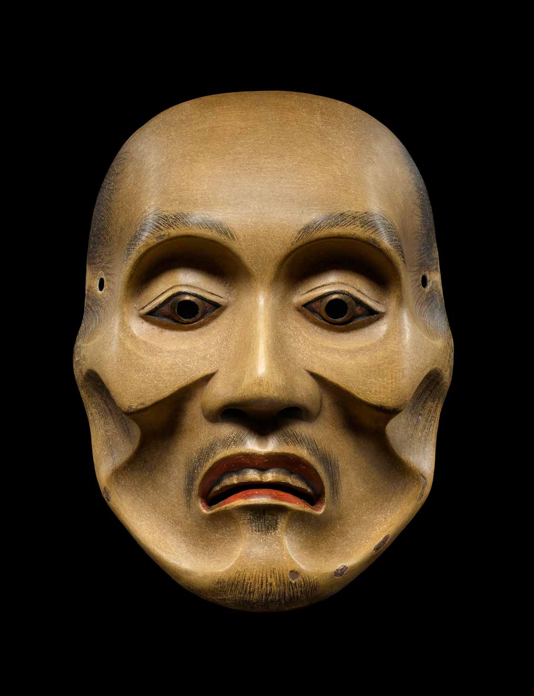 Okina, également connu sous le nom de Hakushikijō, ce masque au visage blanc d'un vieil homme heureux est utilisé dans le théâtre nô et les représentations de festival de la pièce OKINA, également connue sous le nom de SHIKISANBA.
