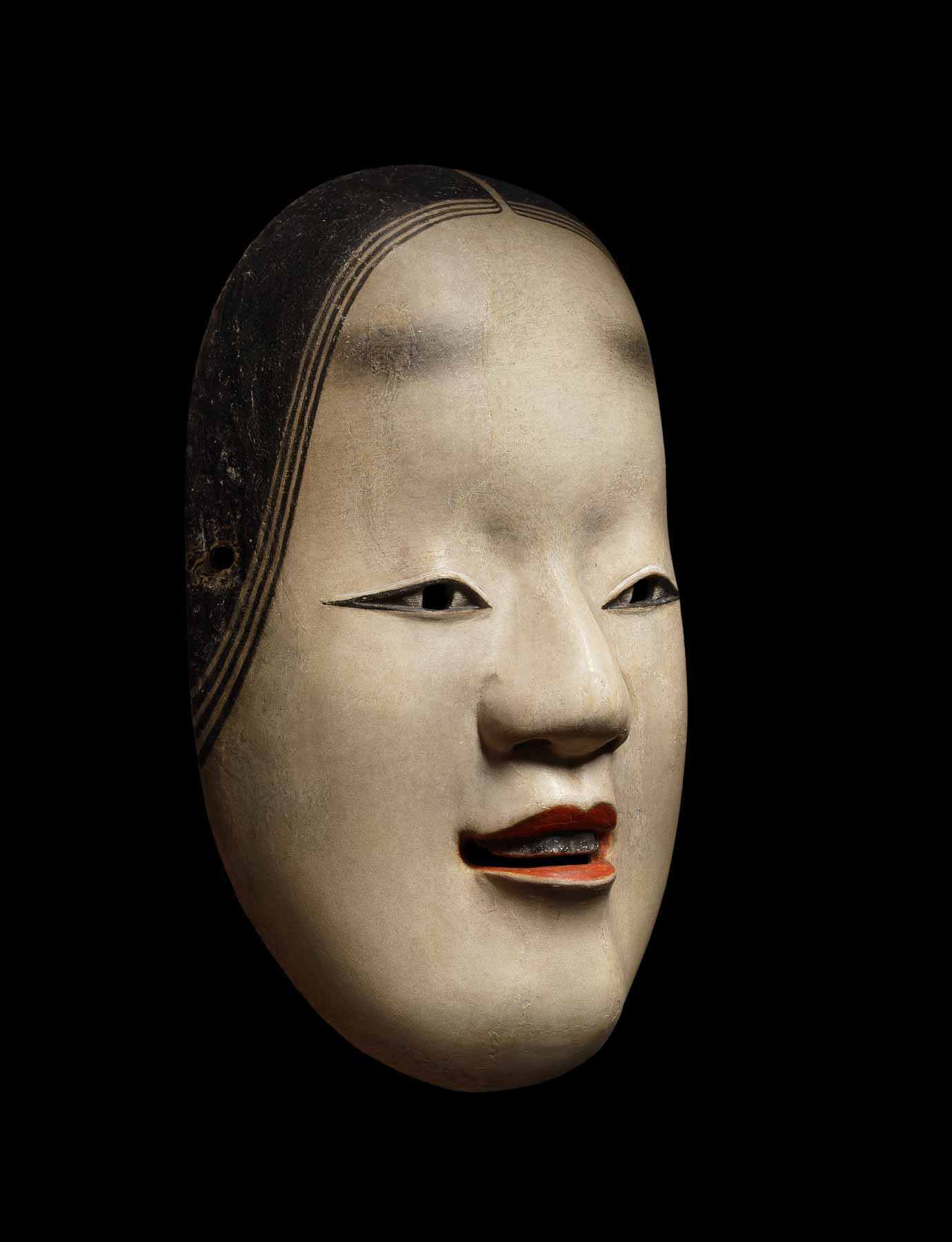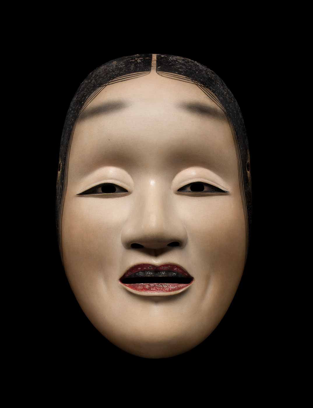 Ko-omote est un masque nô représentant une jeune fille aux premiers élans de féminité. Les joues pleines, le sourire engageant et plein de lèvres, le menton alvéolé et les yeux qui s'écartent sur les côtés suggèrent une personnalité extravertie et engageante. Les sourcils "chenille" sont peints haut sur un front plein et les cheveux noirs séparés au milieu ont trois mèches lâches de chaque côté, gravées avec un outil de sculpture. Ko-omote est utilisé à la fois pour des rôles secondaires tsure par toutes les écoles de nô et pour des rôles principaux shite représentant des jeunes femmes par les écoles Kita et Konparu.