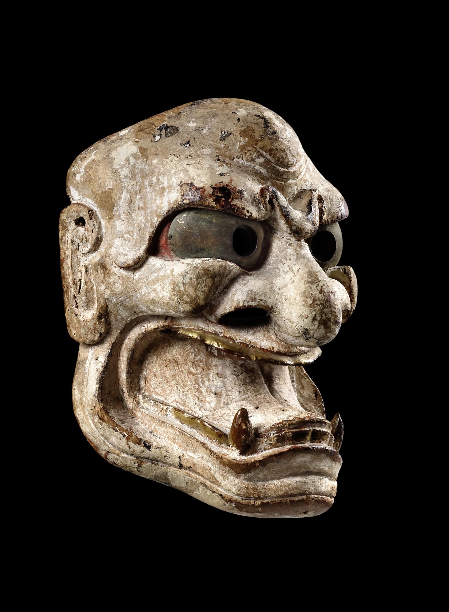 Signifiant « homme émacié », le nom Yase-otoko décrit avec justesse le visage du masque. Les orbites creuses, les joues profondément enfoncées et la mâchoire saillante, bref la dévastation de la chair, représentent le tourment d'une âme condamnée à la damnation éternelle. L'exemple illustré ici est conforme au type standard Yase-otoko qui est généralement un fantôme souffrant en enfer.