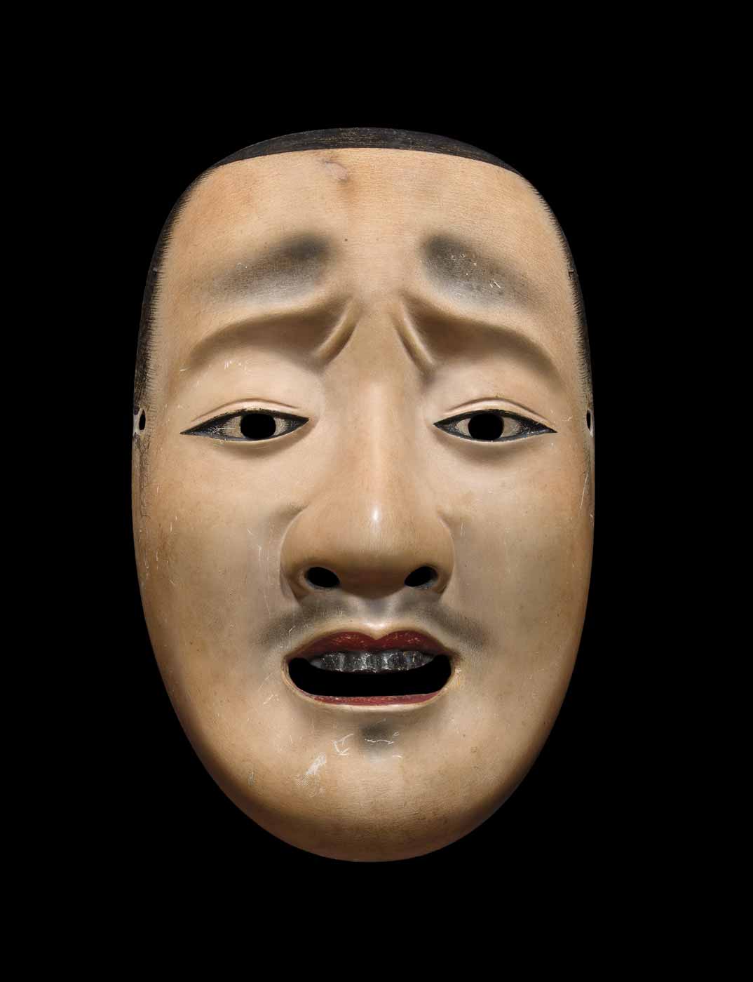 This is a passionate woman’s mask. Her eyes are narrowed like bows and the lower teeth are slightly visible in her smile. The mask has something coquettish, which cannot be seen in other masks. The Omi-onna mask is befitting to a woman madly in love.