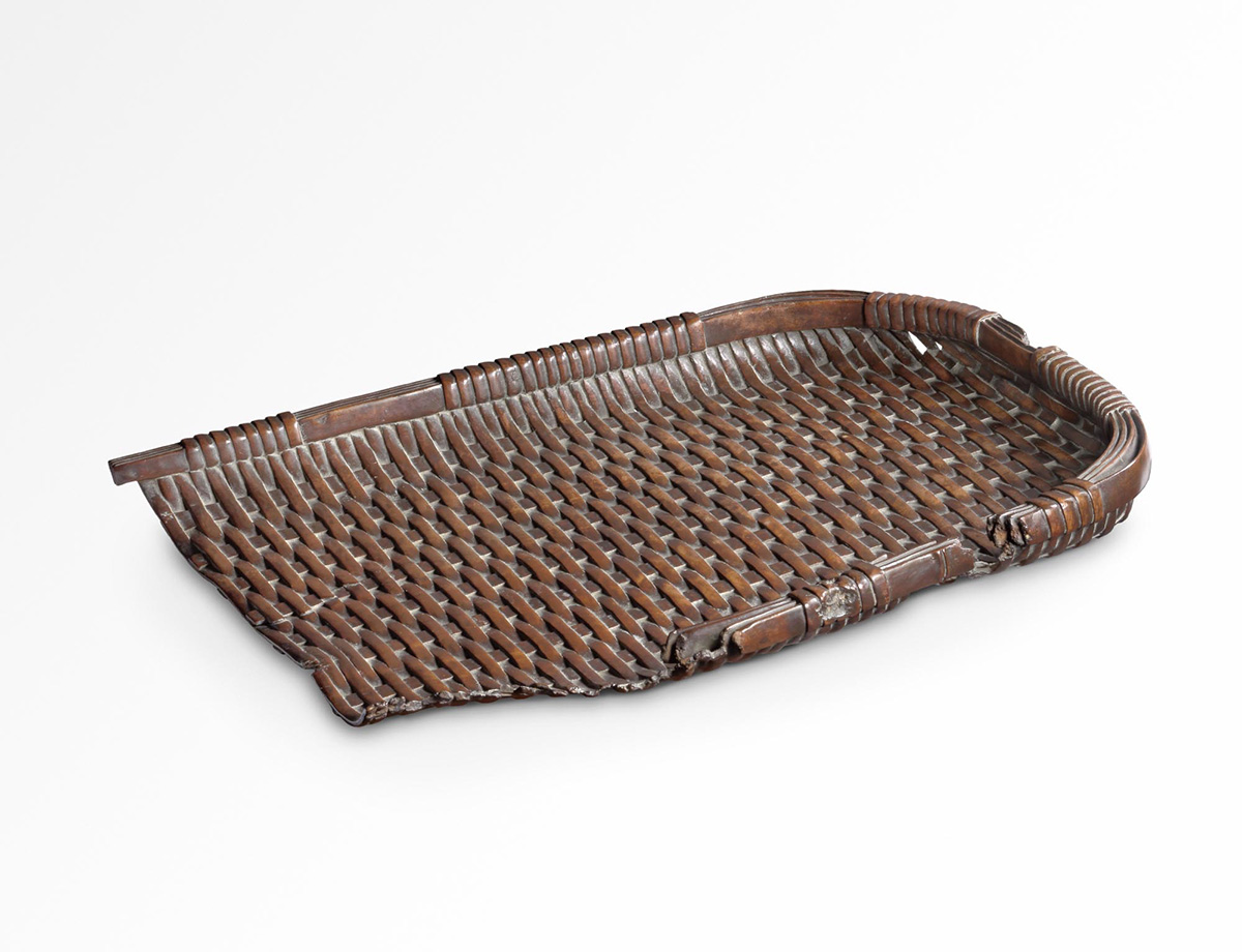 S’il semble à première vue être une vannerie tressée, ce plateau est en réalité une sculpture en bois imitant un plateau de vannage en bambou. Ici le sculpteur