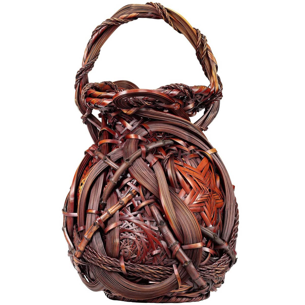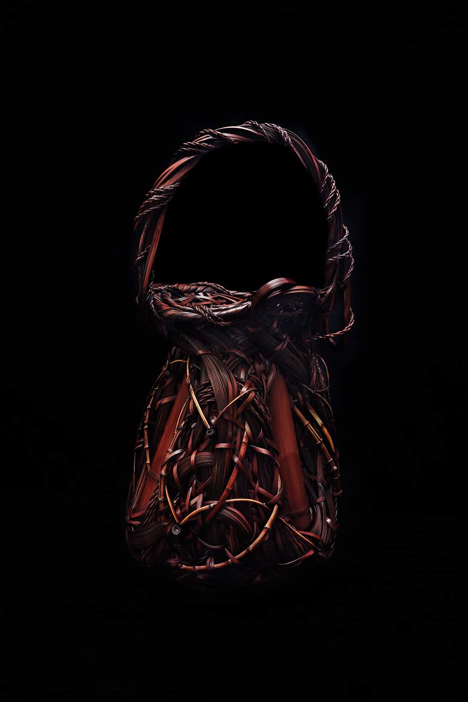 From primary school, he was introduced to the basic techniques of this art by his father and produced his first basketwork for ikebana. Today he is an artist renowned for his unique style which mixes in his works the roots of various plants and fragments of giant bamboo with traditional braiding. An independent artist, he directs the professional association of bamboo artists and is the recipient of numerous awards.