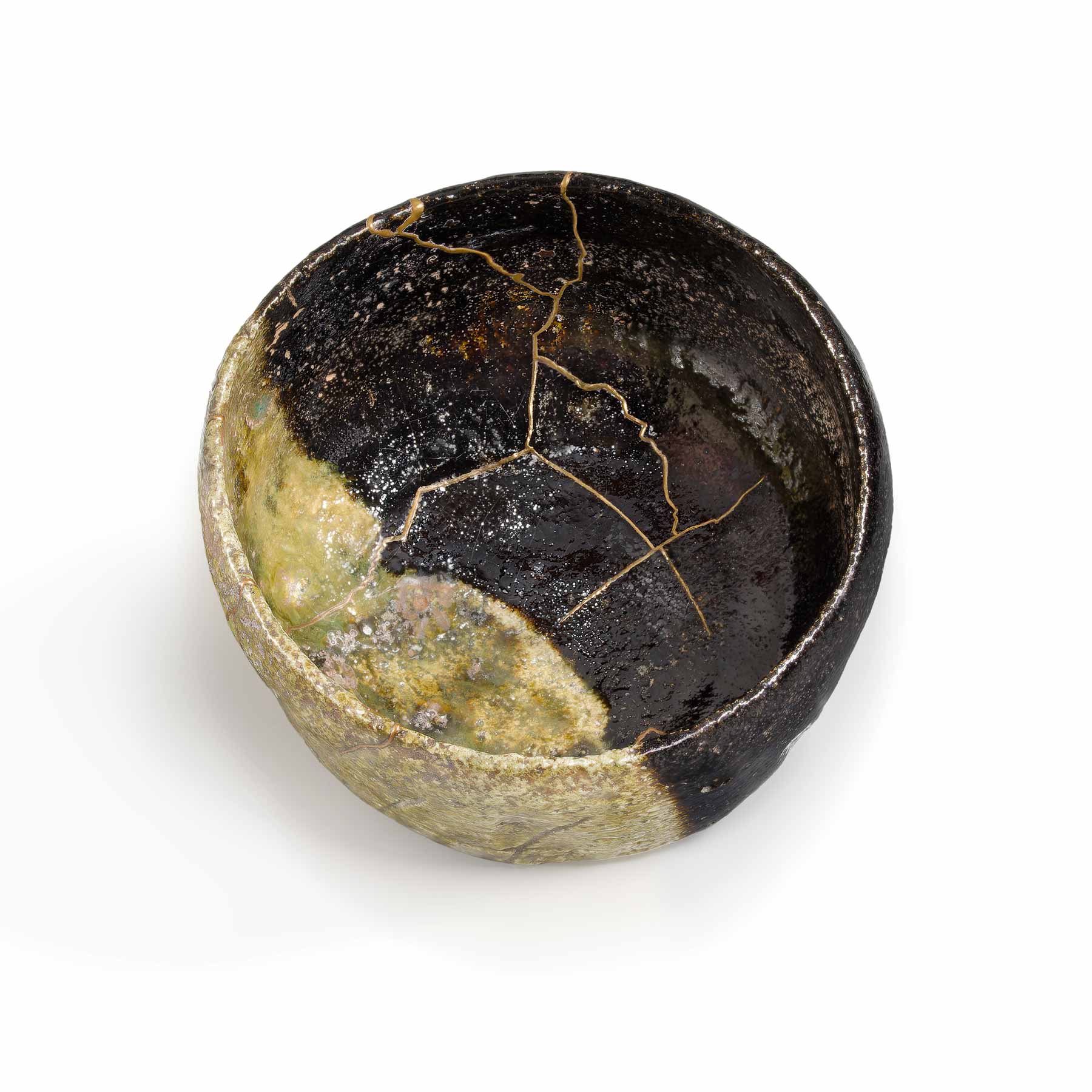 L'or brille à la fois sur les côtés noir et vert du chawan, à l'intérieur comme à l'extérieur.